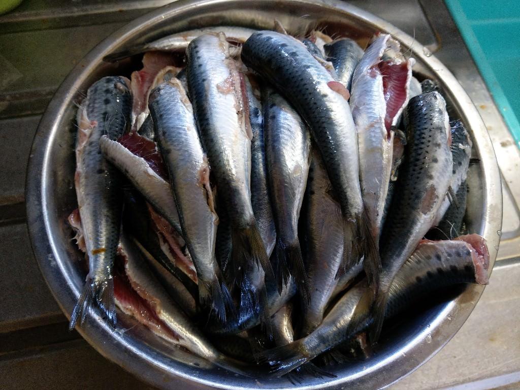 3枚下ろしにして腹骨、背ビレの骨取る、骨食うなら取らなくても
