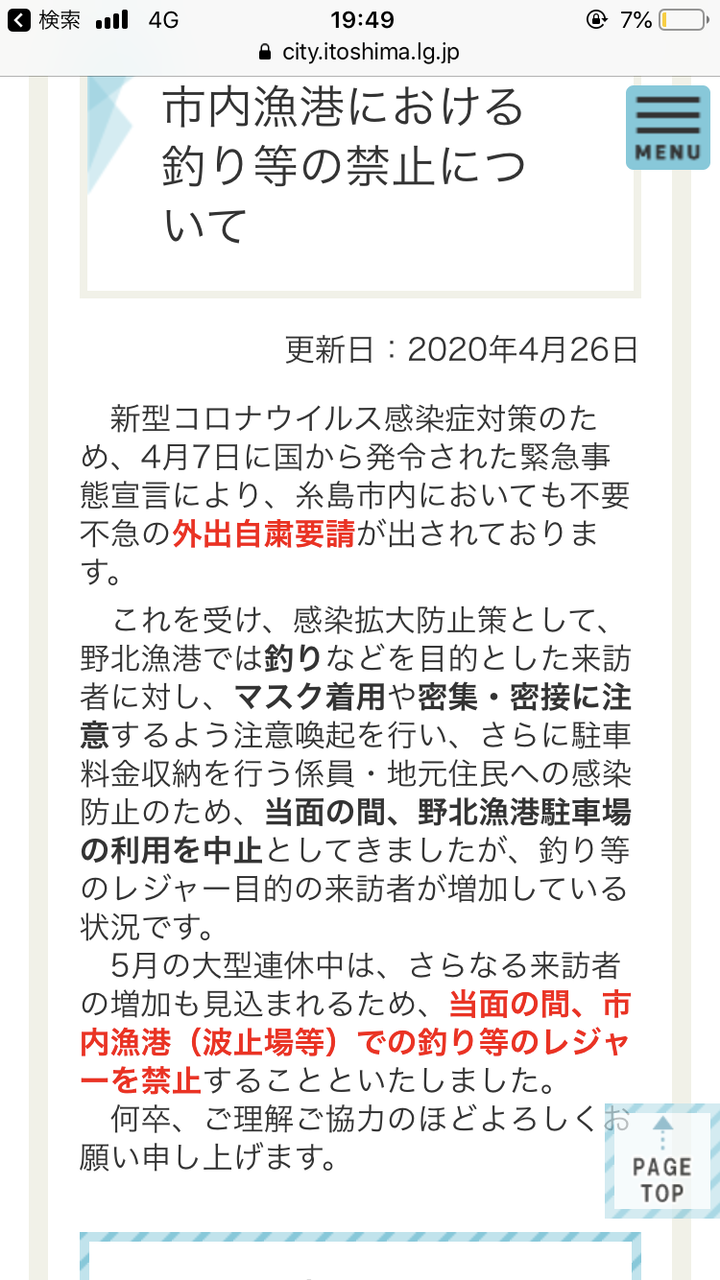 ゴールデンウィークにむけて漁港や堤防や駐車場の閉鎖がはじまっとるで