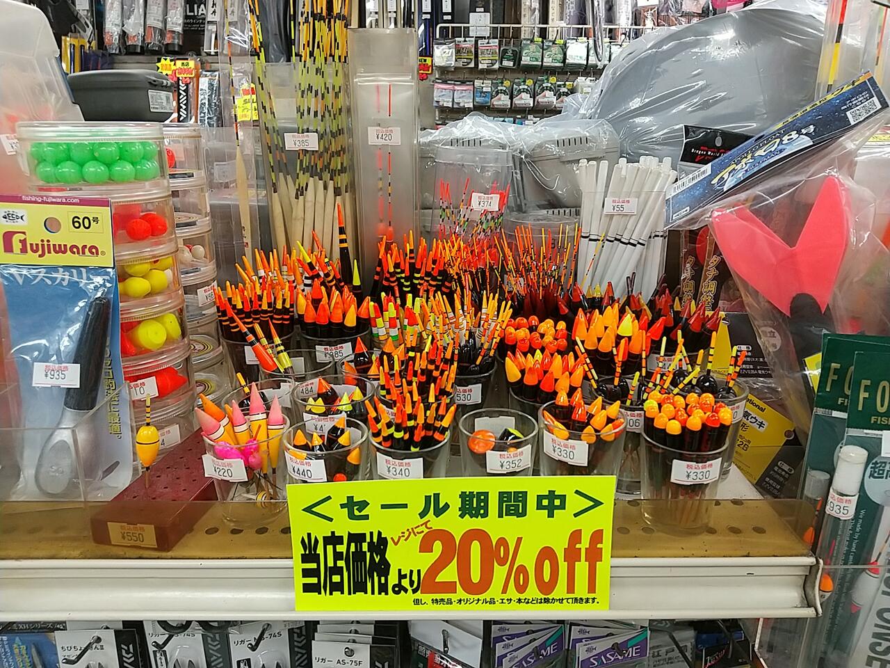 ワイは急遽、置いてるウキの類は全部一種類づつ買っていく予定や